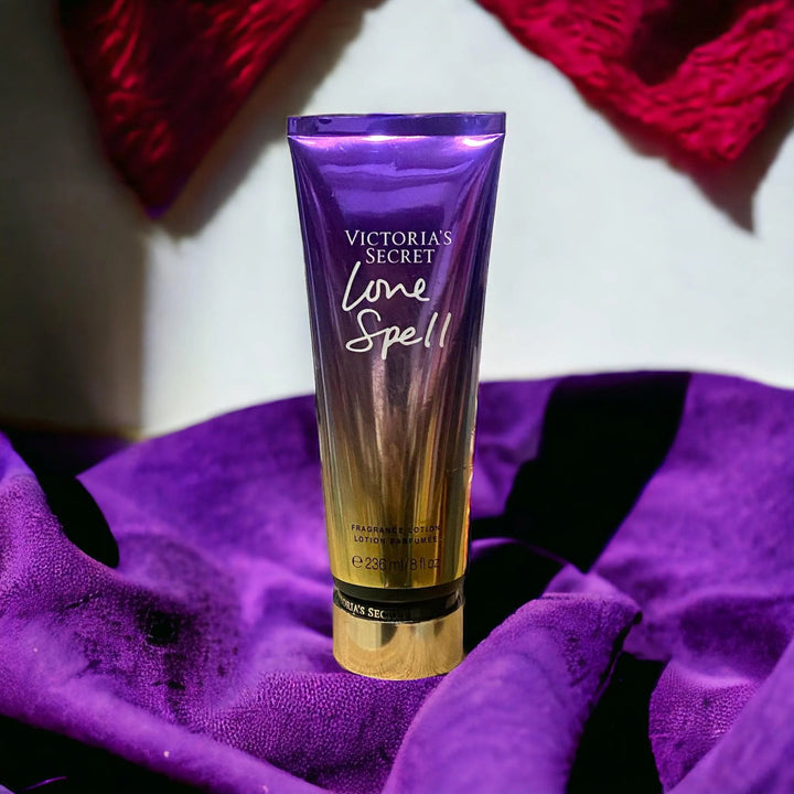 "Indulge in the enchanting allure of Victoria's Secret Love Spell Fragrance Lotion. Crafted with a captivating blend of cherry blossom and peach, this luxurious lotion leaves your skin feeling irresistibly smooth and delicately scented. Pamper yourself with this seductive fragrance that lingers throughout the day. Elevate your self-care routine with Victoria's Secret Love Spell Fragrance Lotion, the perfect blend of romance and luxury."